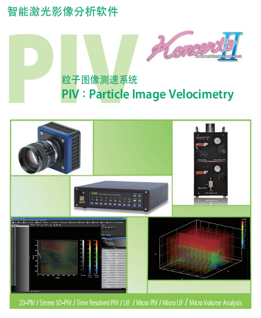 PIV(粒子圖像測(cè)速)是一種用二維的方式顯示速度矢量,使流體可視化的一種測(cè)量技術(shù)。 對(duì)在一定空間中的粒子使用片狀激光在極短的時(shí)間內(nèi)連續(xù)照射兩次,并且使用高分辨率相機(jī)與激光同時(shí)拍攝,取得兩個(gè)粒子群的圖像。 通過(guò)PIV專(zhuān)有算法(互相關(guān))分析該圖像的同一區(qū)域(解析窗口)中的粒子,可以獲得表示速度矢量的二維數(shù)據(jù)。PIV不僅可以獲得二次元的 數(shù)據(jù)(2D2C),還可以通過(guò)使用立體拍攝來(lái)獲取二維三...